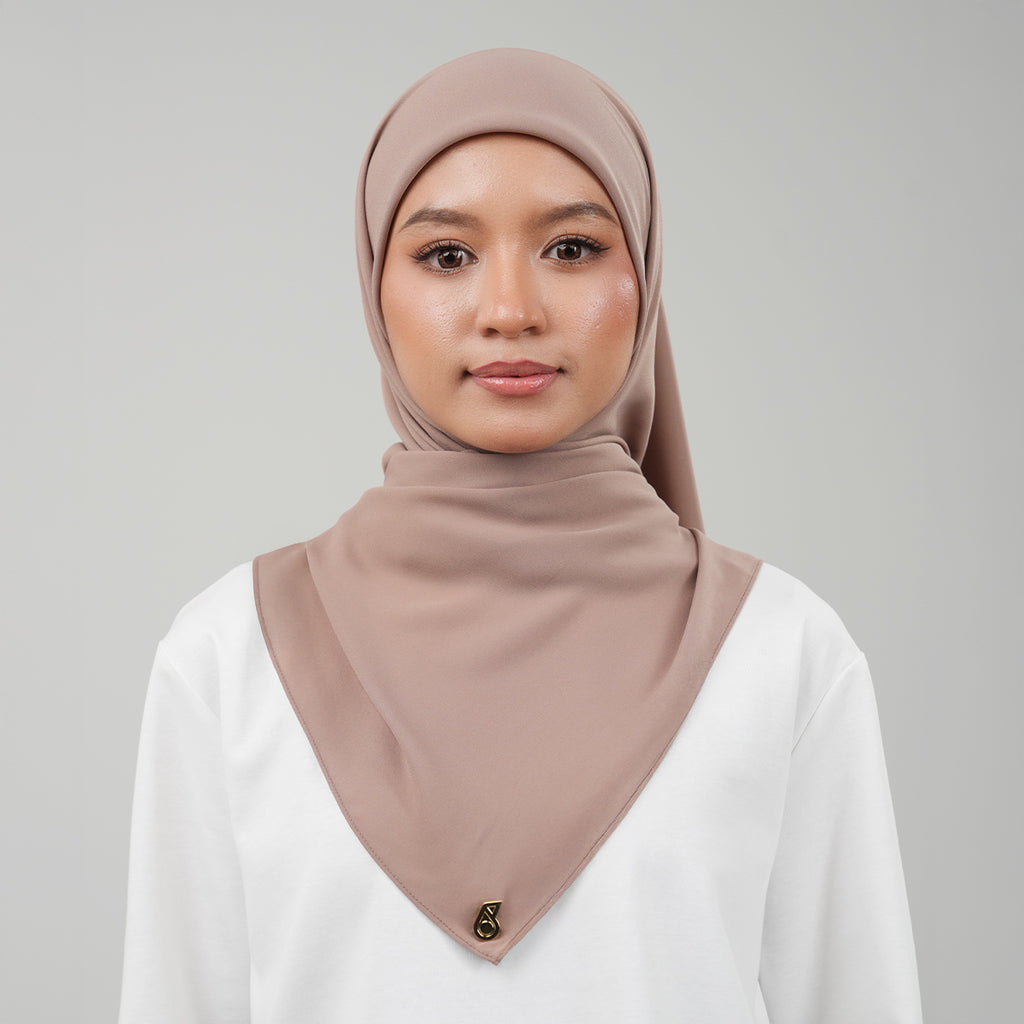PETRONAS Chiffon Square Hijab in Frappe features a refined minimalist design that highlights elegance and comfort. It is made from premium chiffon, offering a lightweight, soft, and flowing texture for easy styling and all-day comfort. Measuring 45 cm x 45 cm, this plain square hijab is finished with a rolled hem edge and adorned with the PETRONAS logo in stainless steel with a smooth, glossy finish, a subtle detail that enhances its sophisticated appeal.
