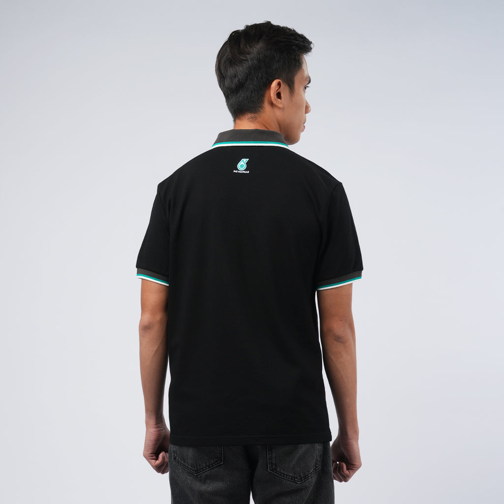 The PETRONAS Men's Organic Cotton Polo in Black is designed for daily comfort with an eco-friendly touch. It features a regular fit with short sleeves, a ribbed collared and a three button placket with recycled plastic buttons. Made from 66% Organic Cotton, 29% Recycled Polyester and 5% Spandex, the fabric is lightweight breathable, stretchable and wrinkle resistant, making it suitable for all-day wear. Accented with an embroidered PETRONAS logo and a practical front pocket, this polo offers a versatile style for both casual and semi-formal occasions.