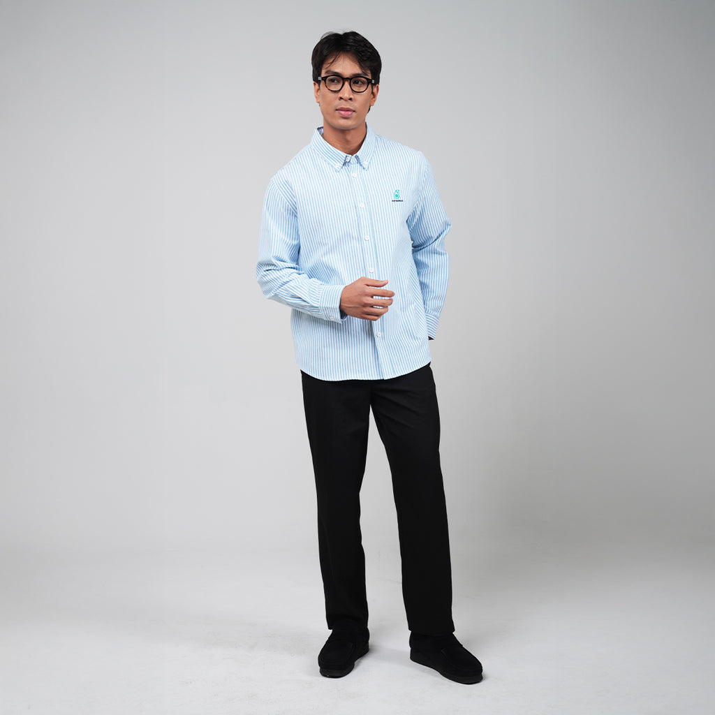 The PETRONAS Daily Striped Men’s Shirt in Cyan Blue features a regular fit that combines comfort and style, with a striped pattern and an embroidered PETRONAS logo on the chest. Made from 100% Cotton-Oxford for durability and a polished appearance, it comes with a classic shirt collar that enhances its versatility for both casual and professional settings.