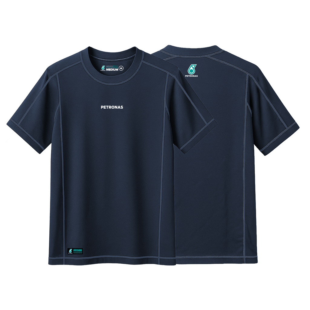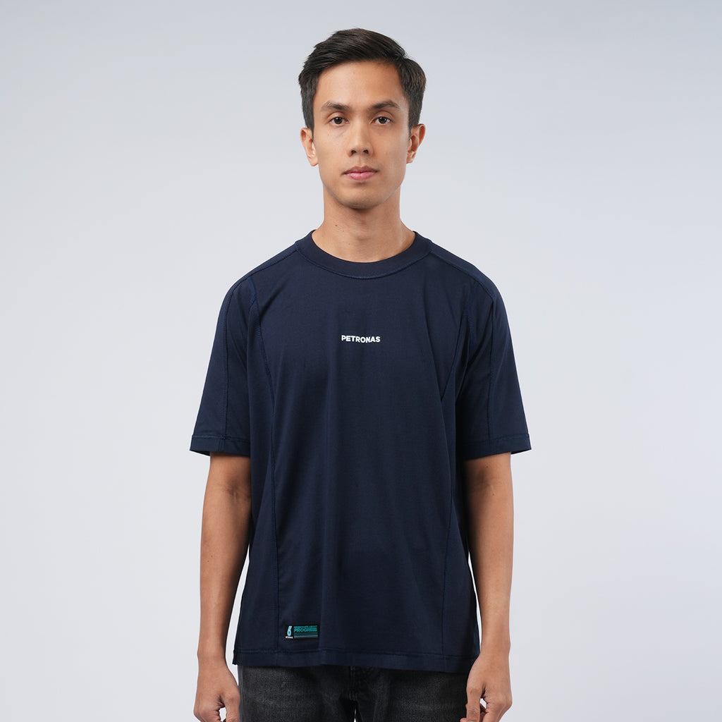 The PETRONAS Motorsport Oversized Tee in Navy combines style and innovation, perfect for motorsport enthusiasts. Featuring PETRONAS lettering on the front and the PETRONAS logo on the back. Made from 70% Cotton and 30% Polyester (210gsm) for comfort and durability, with cut and sew double stitch.