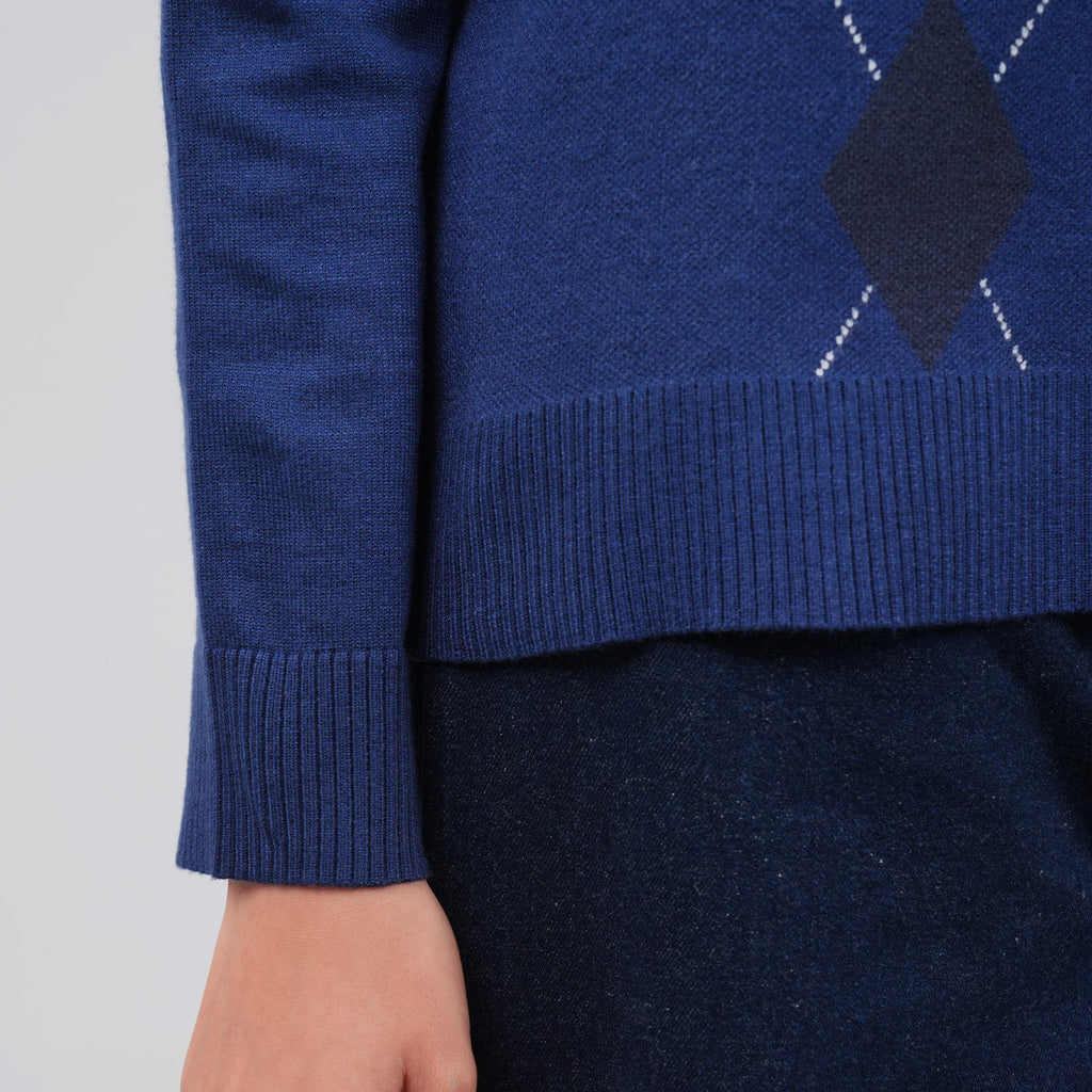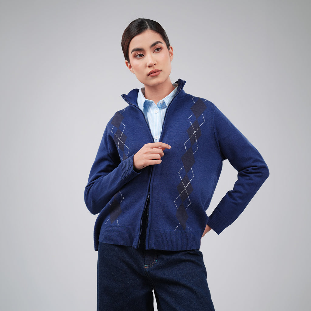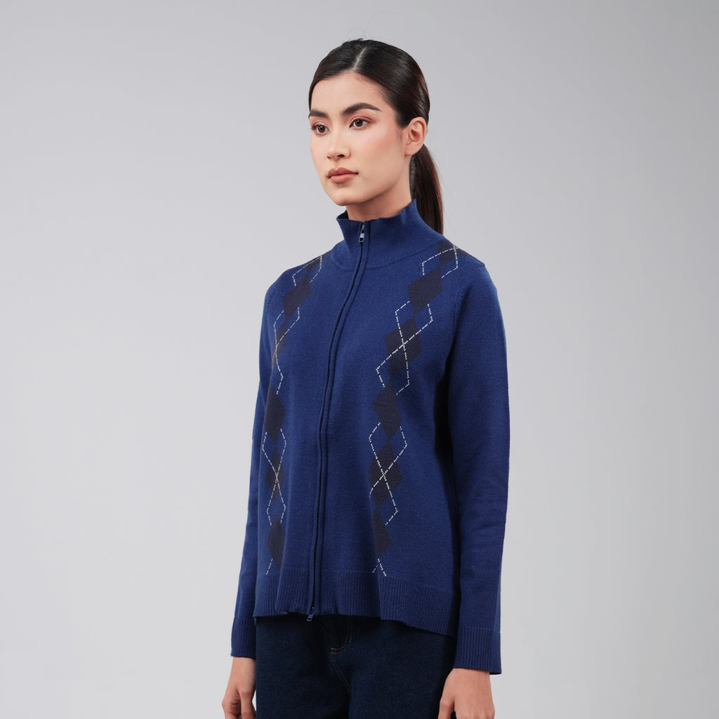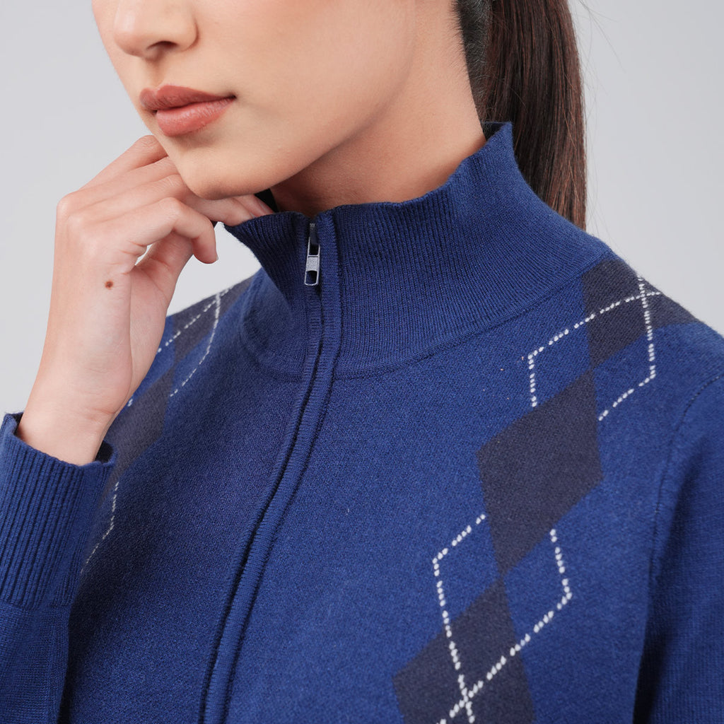 The PETRONAS Women's Diamond-Pattern Sweater in Navy is designed for the modern woman who values elegant casual style and all-day comfort. Featuring a relaxed cropped fit with long sleeves and a versatile two-way zipper, it can be styled zipped up for a sleek high-neck look or unzipped for a more casual, open appearance with a ribbed collar. Ribbed detailing on the collar, cuffs, and hem adds a refined touch, while the embroidered PETRONAS logo on the chest provides a premium, exclusive finish.